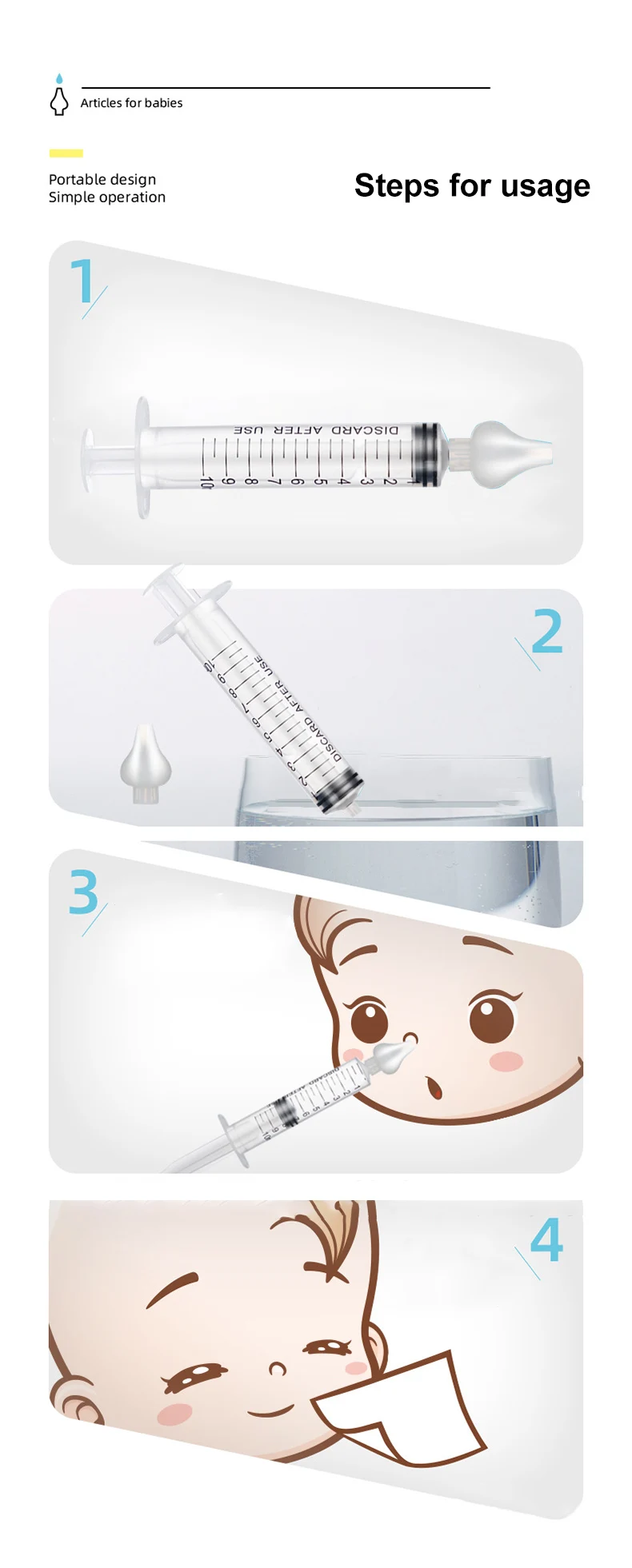 -Силиконовый наконечник всасывания носа, 10 мл портативный шприц, удобный для использования. -Используется для ухода за носовой полостью детей, промывания заблокированной носовой полости с помощью runny nose, профессионального вдыхания пыли, ухода за носовой полостью и мытья. -Глубокая очистка, не заглушает воду. Контролируемое давление, равномерный поток воды, дизайн шприца, избегайте дисбаланса давления. -Смягчает носовые парши, успокаивает и разглаживает носовые полости маленьких детей. -Светильник небольшого размера, легко хранить и переносить.