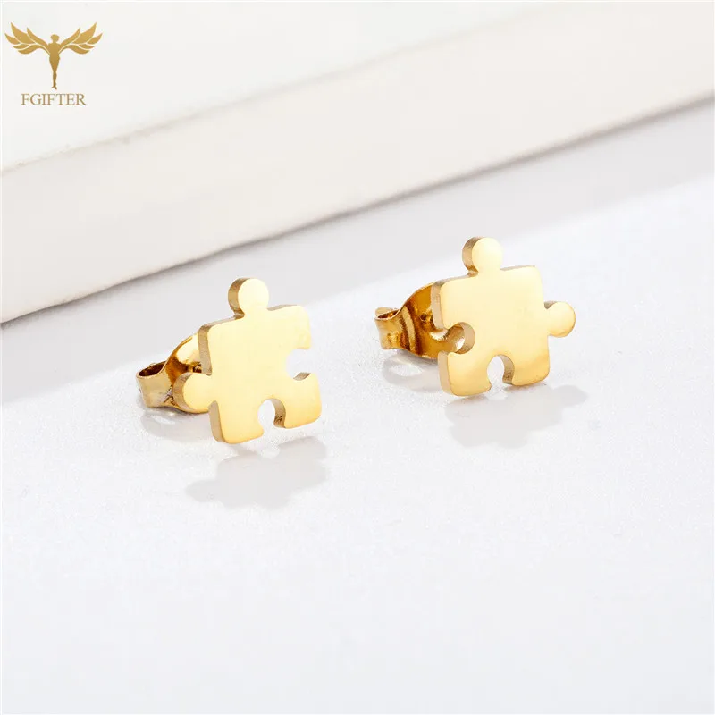 Золотые серьги-гвоздики из нержавеющей стали, ювелирные изделия, обучающая игрушка, дизайн, модные женские серьги для пар, подарок
