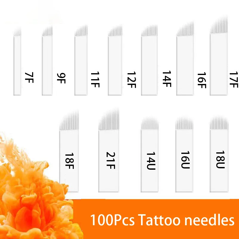 100 шт. микроблейдинг Белый 12/14/16/18 гибкий U-образный ламинас нано иглы для татуировок лезвие для макияжа бровей ручка Tebori принадлежности