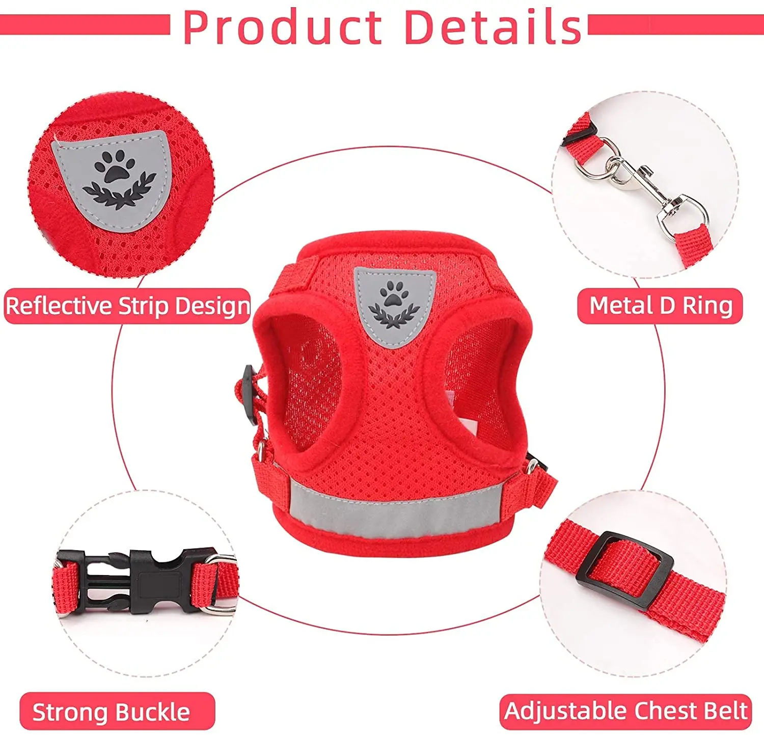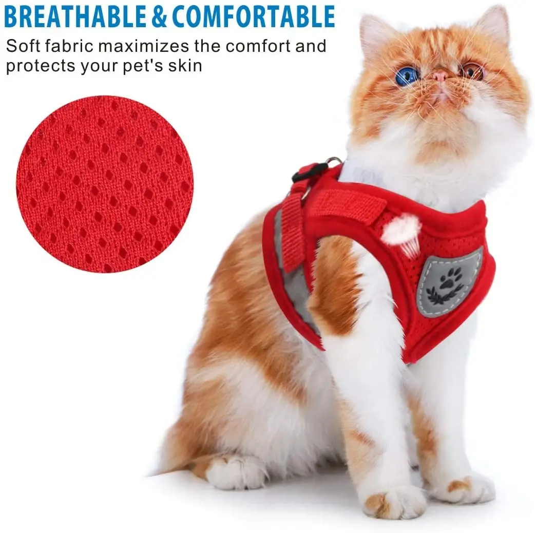 Воздухопроницаемая шлейка и поводок для кошек, светоотражающая жилетка с защитой от ударов, для котят, щенков, собак, регулируемая, легкое управление