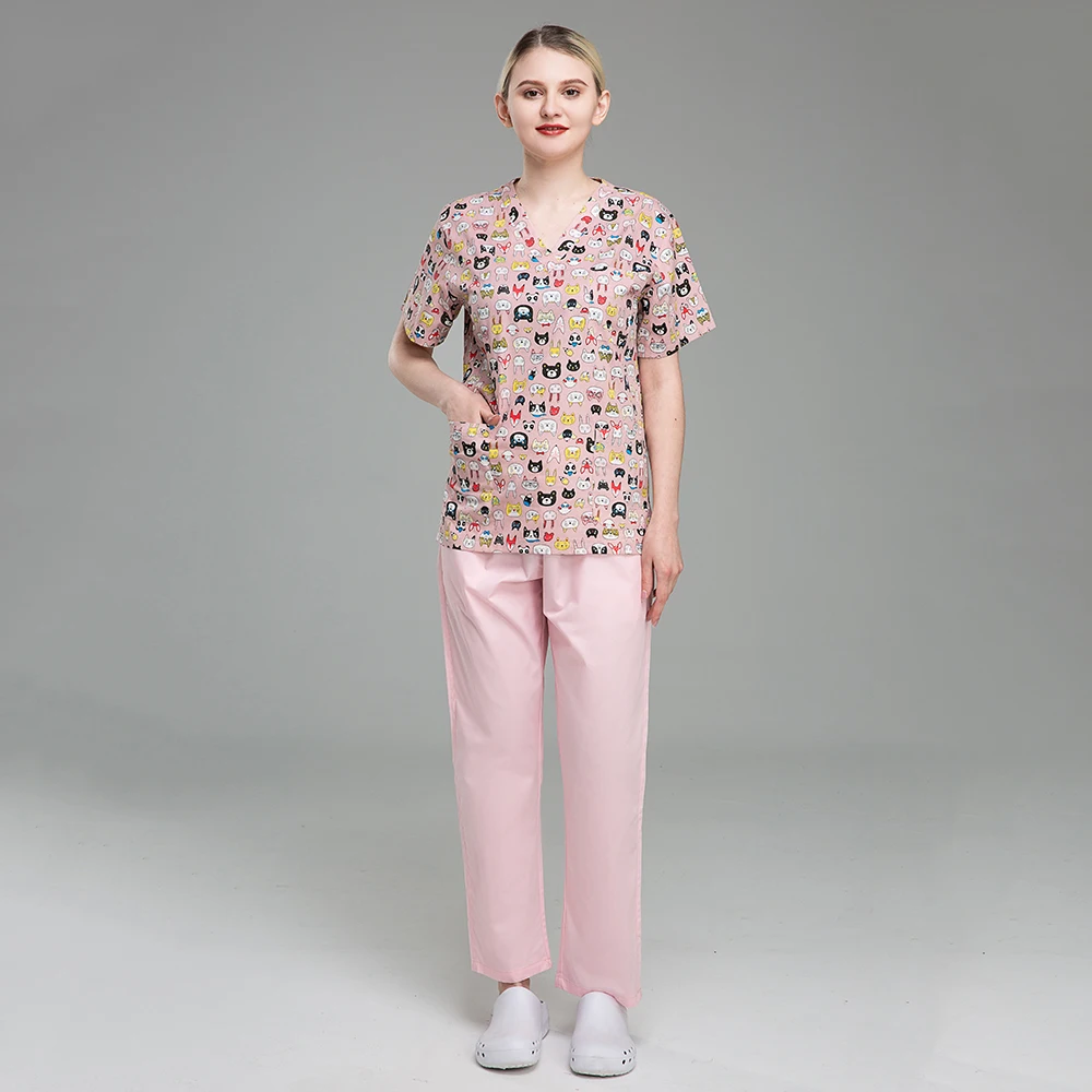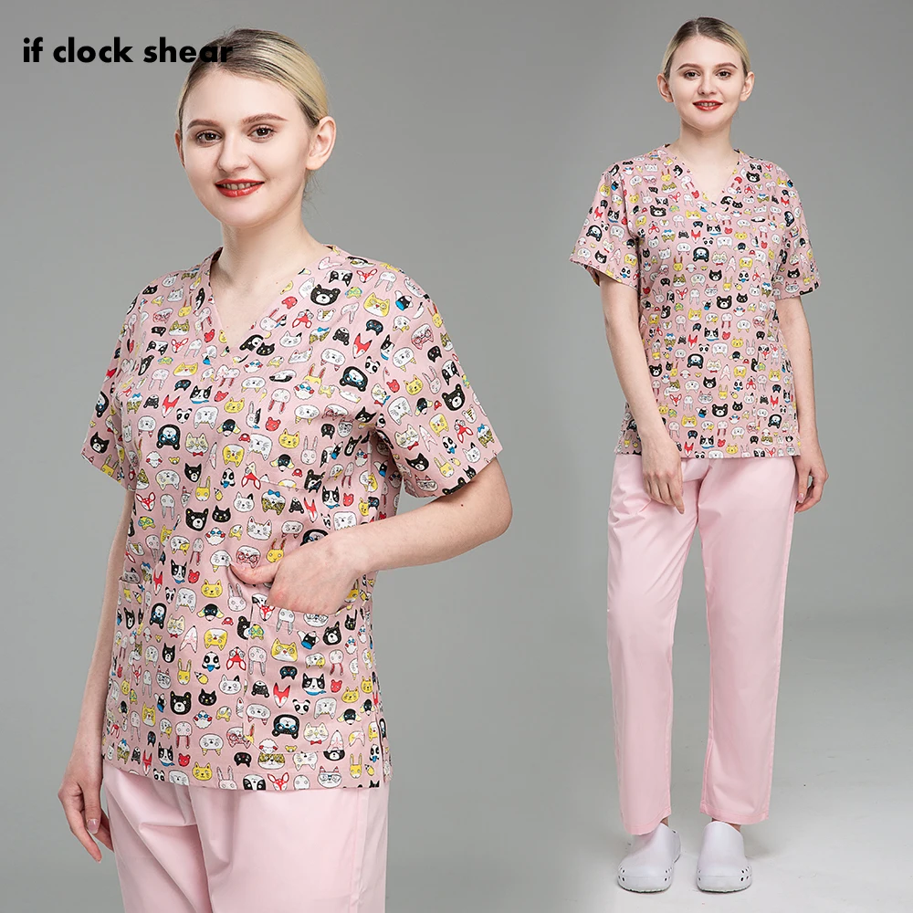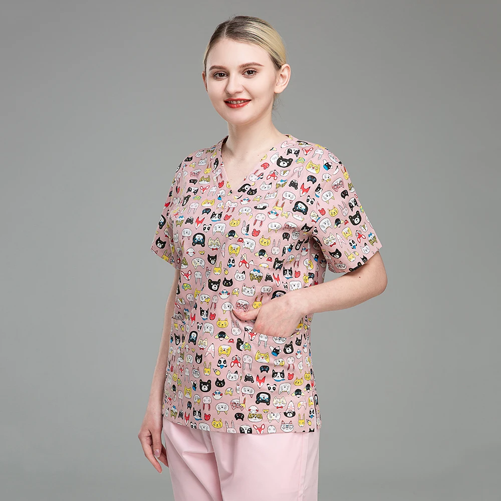 Scrubs tops Cute Cartoon printing Kindergarten teacher workwear pet...