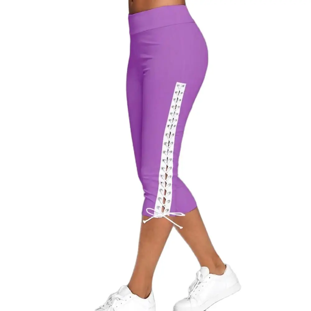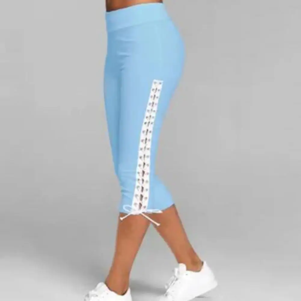 Брюки-Капри женские, со шнуровкой по бокам, с эластичной талией, 34, размера плюс, L-4XL