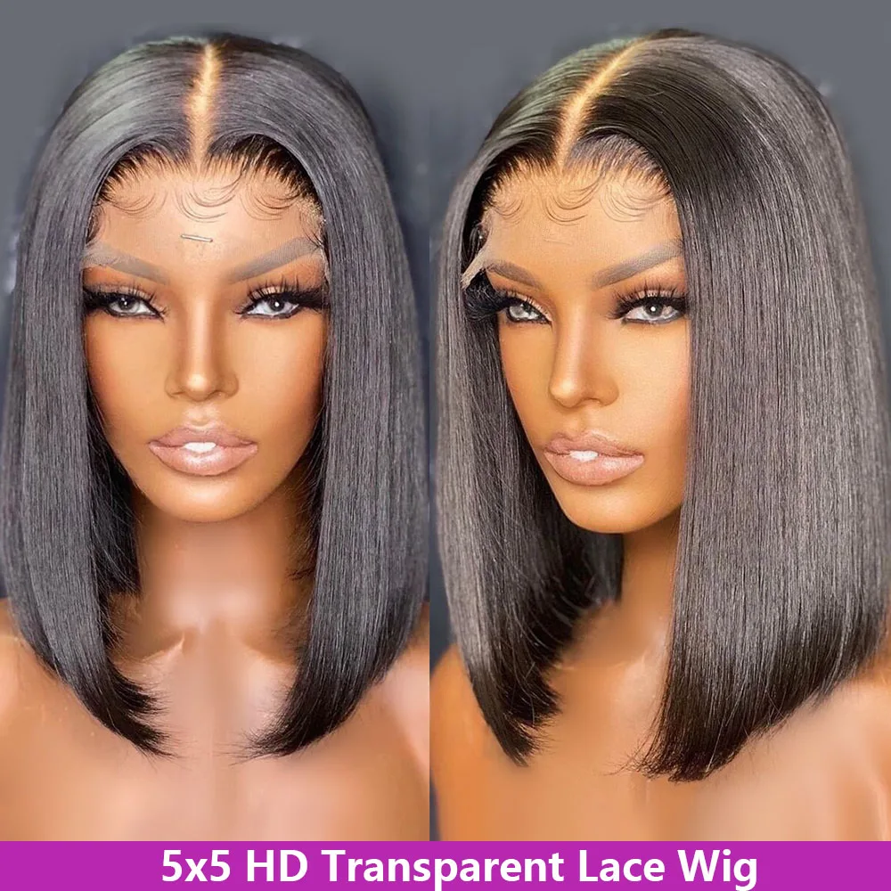 13х4 прозрачный прямой Боб натуральные человеческие волосы парик предварительно выщипывающийся ребенок бразильский фронтальный Remy 4x4 5x5 Закрытие парики черные женщины