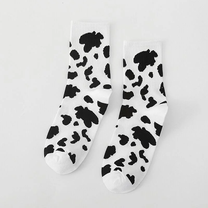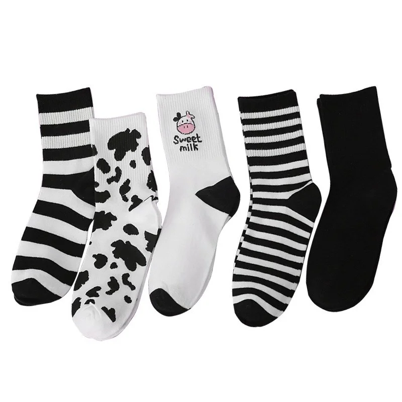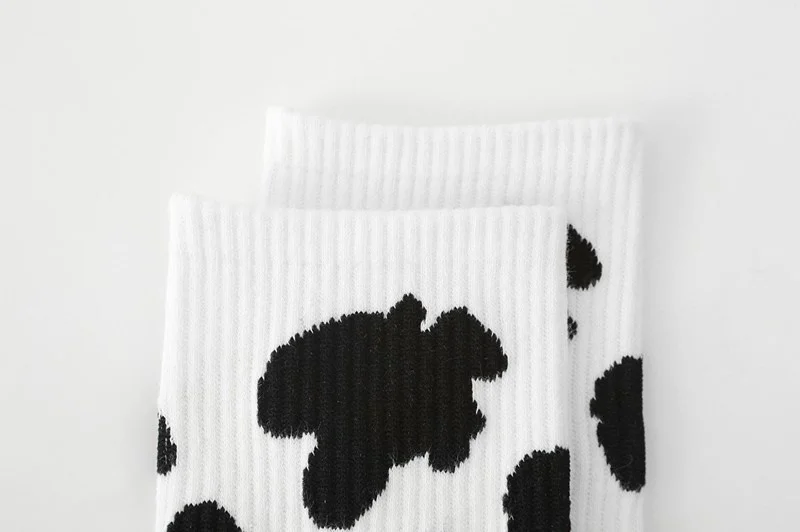 Носки женские хлопковые с принтом коровы, милые носки в японском стиле Харадзюку, полосатые дышащие повседневные с мультяшным принтом, однотонные