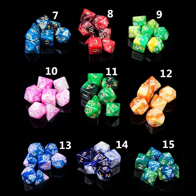 7 шт.набор, полимерные многогранные кости D d D4 D6 D8 D10 D12 D20