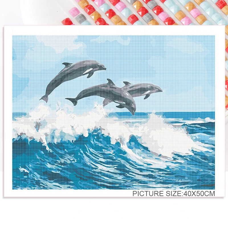Алмазная 5D картина сделай сам под водой, волна мира, голубой кит, полноразмерная и круглая вышивка, мозаика, крест ручной работы, украшение для дома