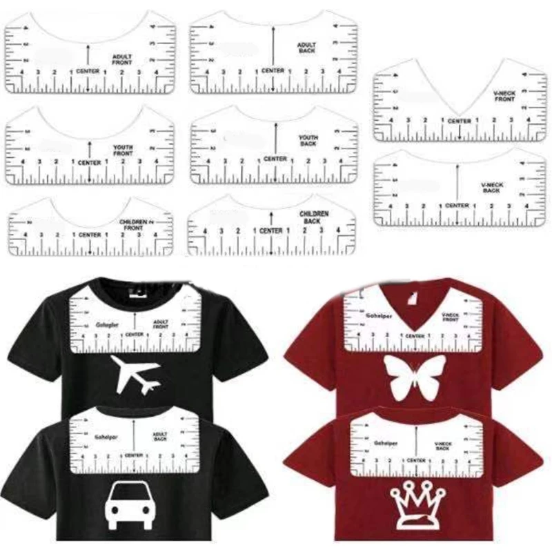P15D 8 шт Прозрачная Футболка линейка руководство Центр набор дизайнов для проектирования одежды Передняя Задняя v-образная горловина DIY шаблон выравнивание