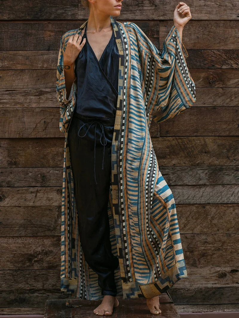 Женская Пляжная накидка-кимоно из хлопка, с длинным рукавом
