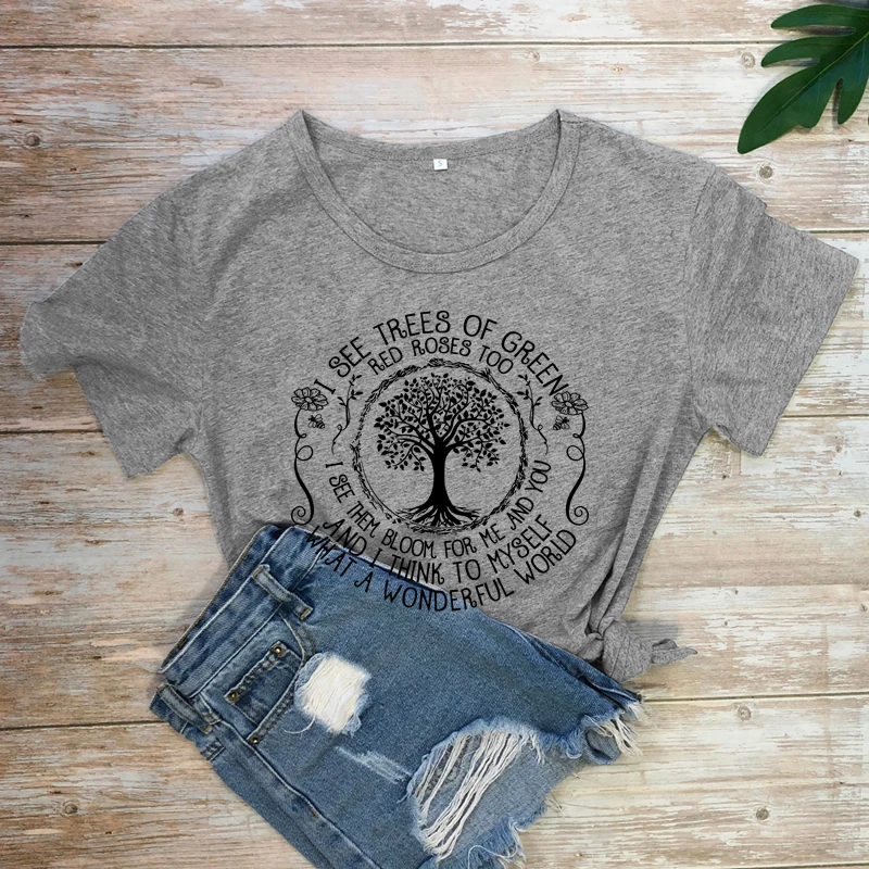 Футболка с надписью Я вижу деревья зеленых и красных роз, Винтажная футболка с изображением мамы в саду, забавная футболка с изображением природы на День Земли