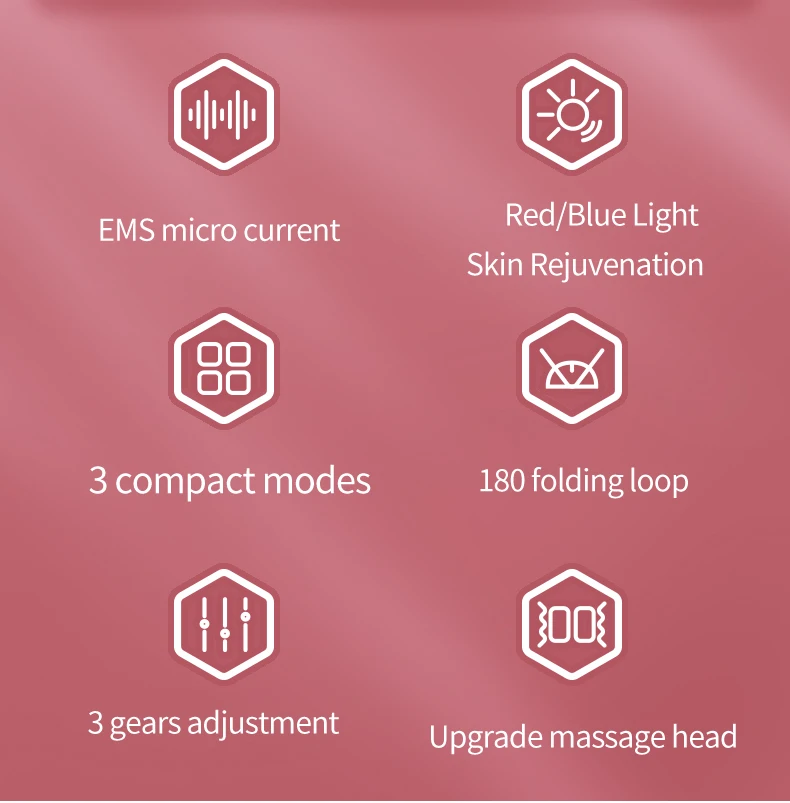 1. TENS Технология микро тока2. Светодиодный фотон3. 3 МГц радиочастота4. Складной дизайн