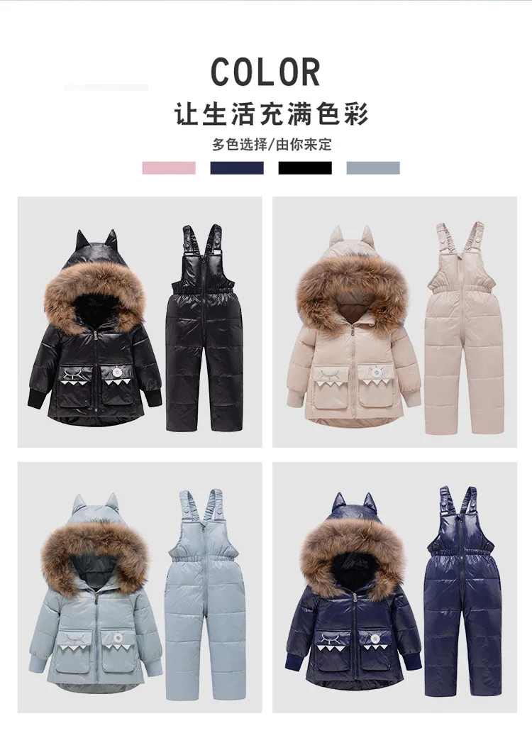 Зимний теплый комплект детской одежды, пуховик с натуральным мехом ...
