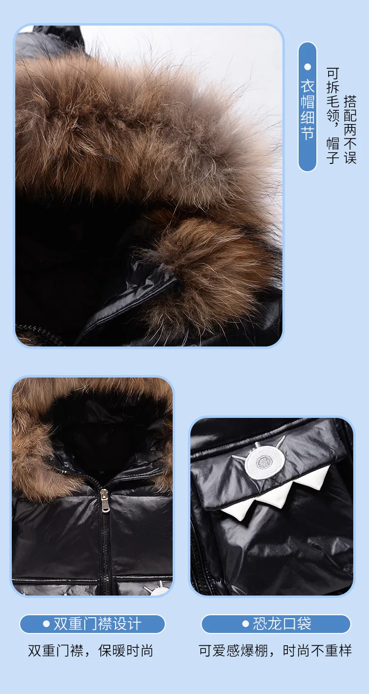 Детский зимний комбинезон с динозавром, на утином пуху, до-30 градусов