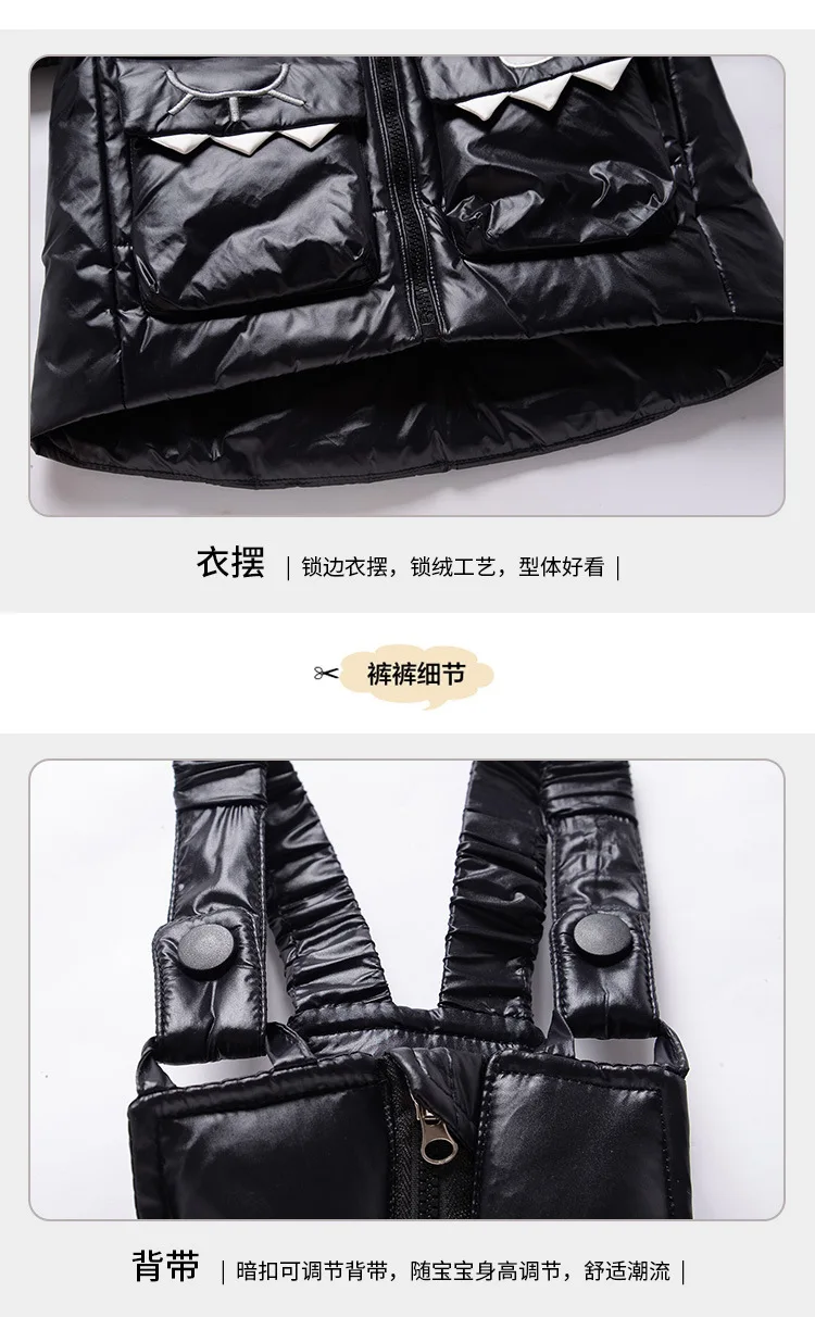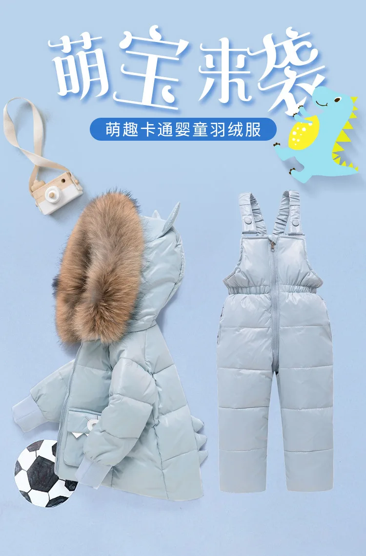 Детский пуховой костюм, зимний теплый лыжный костюм с динозавром, д...