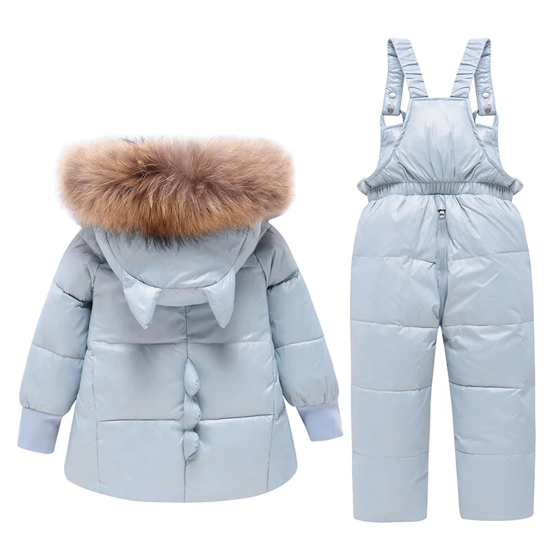 Детский пуховой костюм с капюшоном, с большим меховым воротником