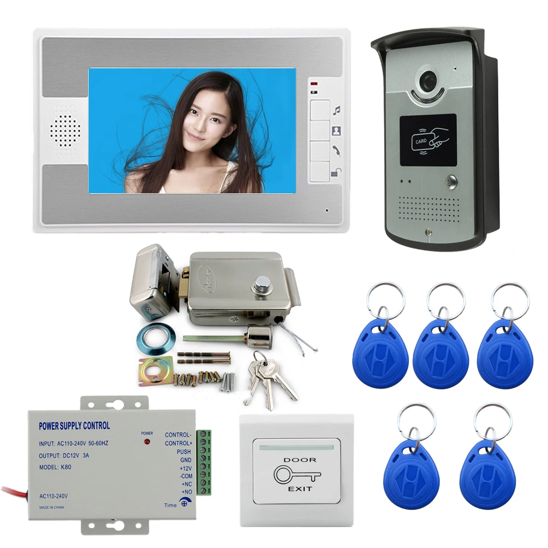 Видеодомофон с цветными экранами 7 дюймов, домофон с камерой RFID, ...
