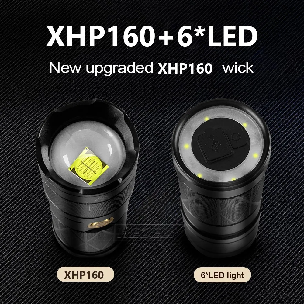 Светодиодный фонарик Power ful XHP160 со встроенным аккумулятором, перезаряжаемый тактический фонарик xhp90,2, высокомощный фонарик USB Type-C