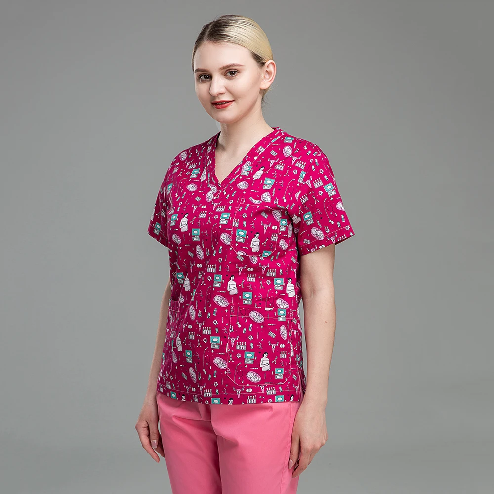 Scrubs tops Cute Cartoon printing Kindergarten teacher workwear pet...