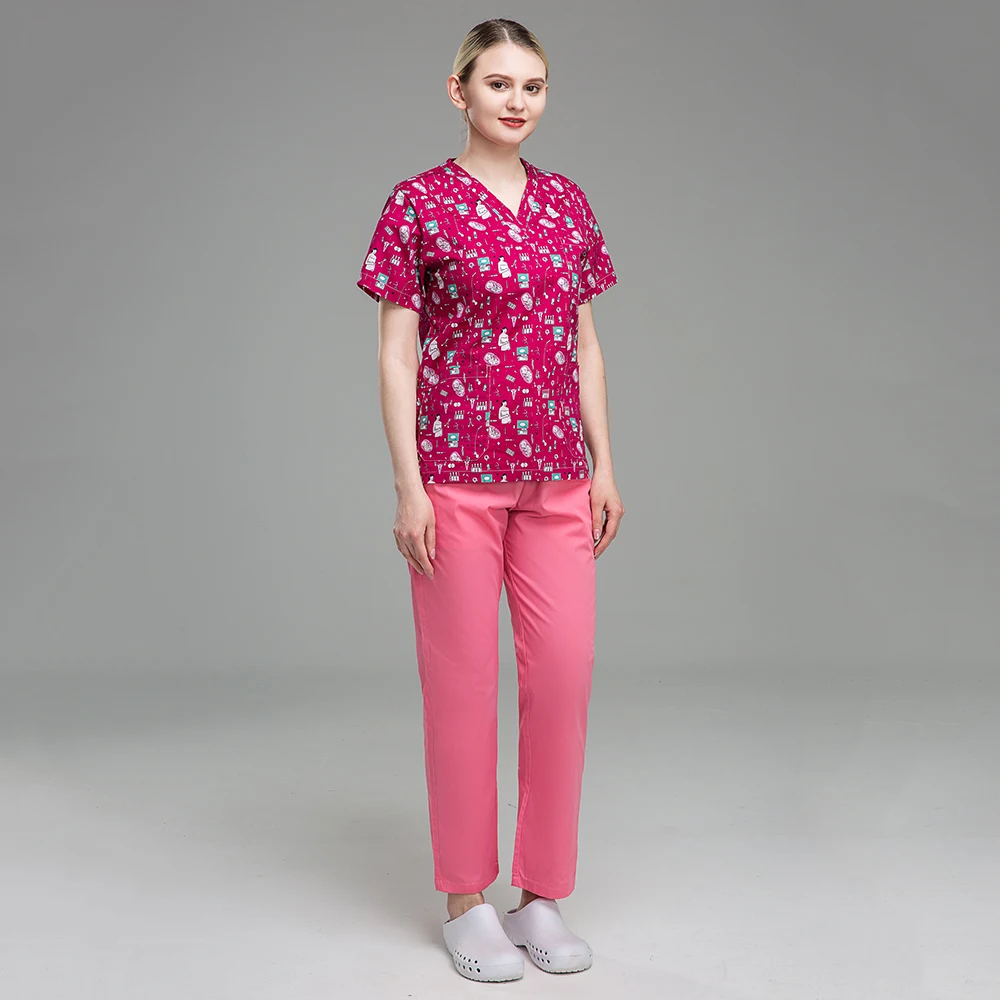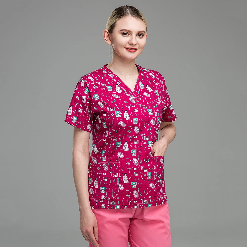 Унисекс, с мультяшным принтом, с V-образным вырезом, Рабочая Унифор...