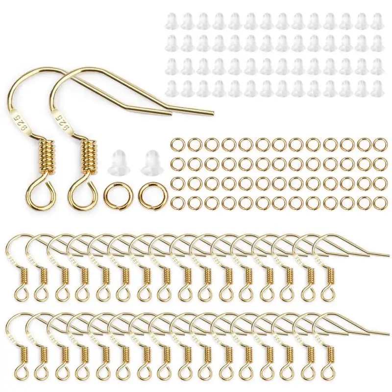 Серьги-гвоздики с посеребренными вставками, набор аксессуаров для изготовления ювелирных изделий сделай сам, 300 шт.компл.