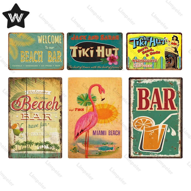 Металлический постер с надписью Добро пожаловать для пляжа, бара, Джека и Сары Тики, жестяная жесть для хижины, винтажная настенная наклейка, металлический знак, жестяной знак для декора клуба, бара