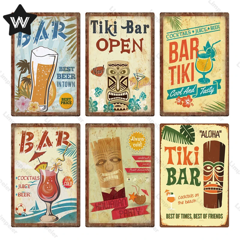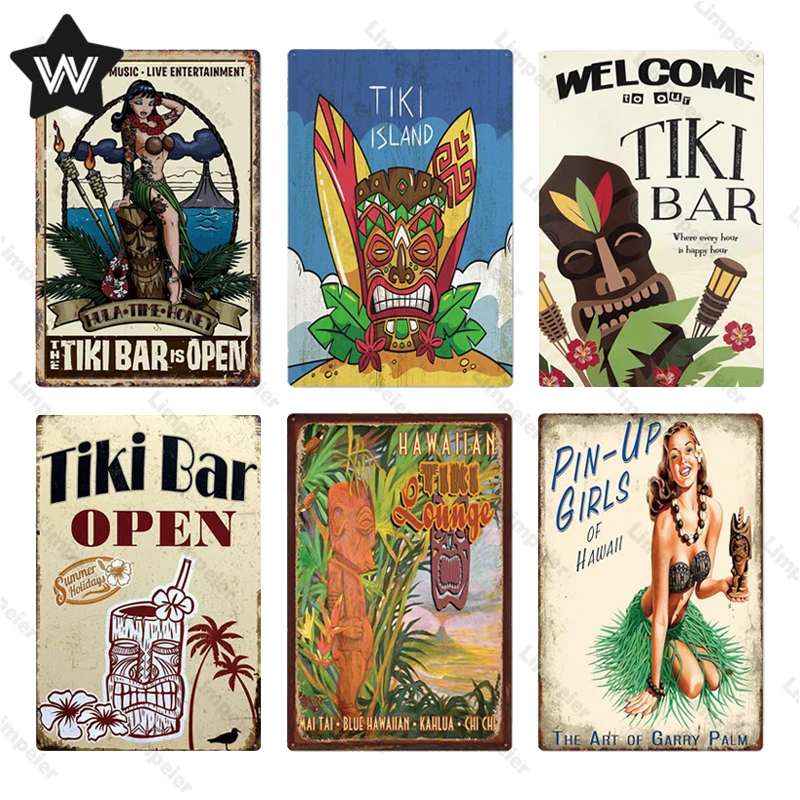 Металлическая жестяная вывеска Tiki, винтажная потертая настенная н...