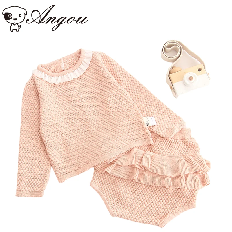 Осенний костюм принцессы Angou для маленьких девочек, свитер с длинным рукавом + юбка с листьями лотоса, трикотажный милый комплект, хлопковая одежда для малышей