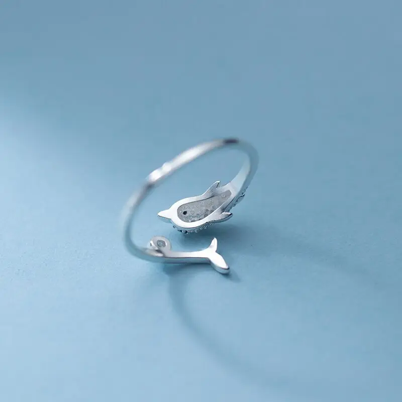 Кольцо женское из серебра 925 пробы, с дельфином