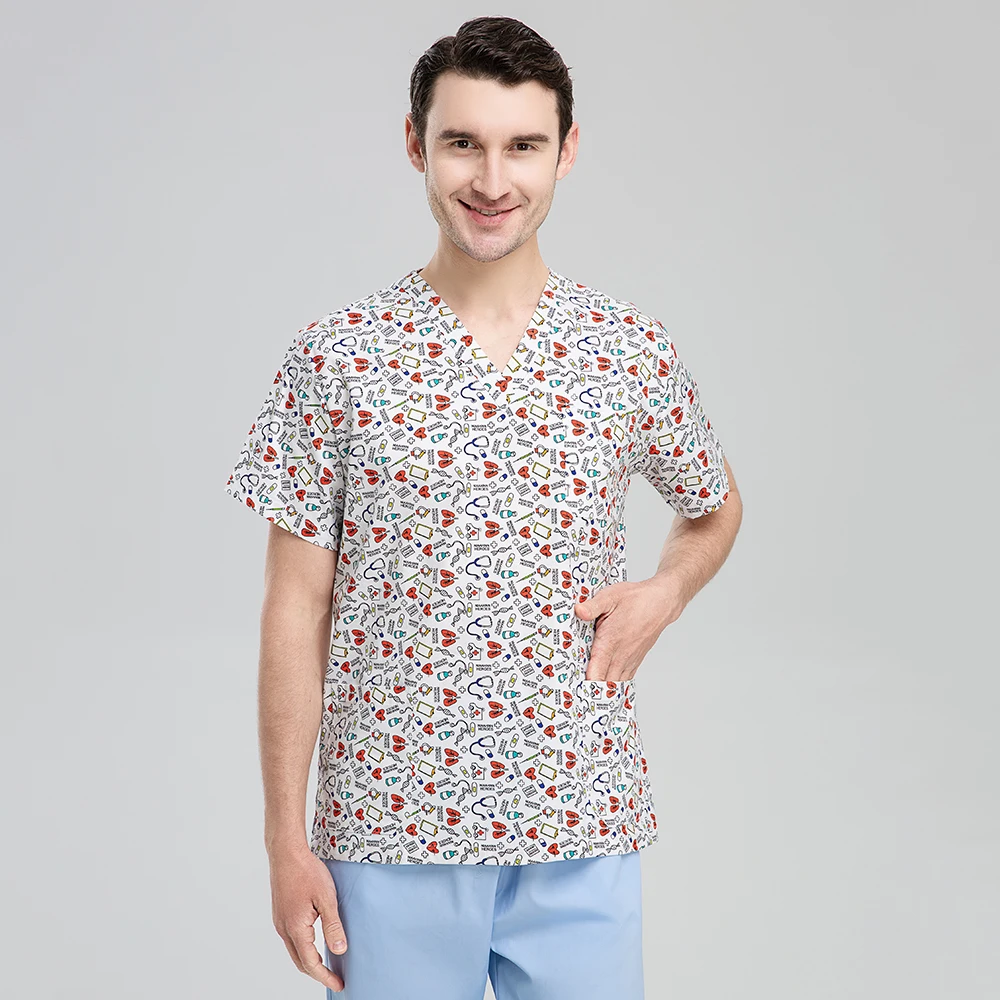 Одежда для работы в салоне красоты, унисекс, с принтом, с V-образны...
