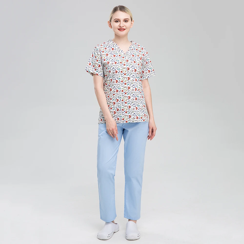 Медицинская медсестра, дышащие хирургические костюмы для салона красоты, стоматологии, врача, мультяшный принт, хирургическая униформа