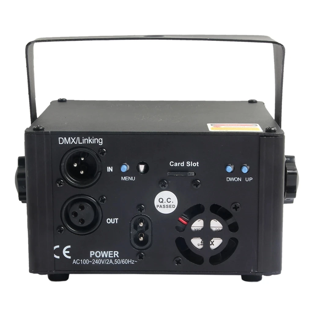 Преимущество:1. Светильник RGB имеет более 100 эффектов внутри.2. ИК-пульт дистанционного управления более 10 метров (без батареи).3. Размер рисунка анимационного сканирования может быть скорректирован.4. Создавайте свои собственные узоры с помощью программного обеспечения узора и сохраняйте Ваши дизайны на tf-карте. (Мы подарим программное обеспечение узора на sd-карте).Режим работы:Режим DMX: Нажмите вверх/вниз изменить адрес DMX.Автоматический режим: воспроизведение внутренней автоматической программы.Обмен: Настройка узора X-Y направлении отображения оси.Режим аудио: воспроизведение внутренней голосовой программы, нажатие кнопки вверх/вниз, изменение голосовой чувствительности.Режим PRG: короткое нажатие вверх/вниз Изменение списка PRG, длительное нажатие вверх/вниз изменение рабочих документов.Режим ILDA: короткое нажатие вверх/вниз файл ILDA, длительное нажатие вверх/вниз изменение рабочих документов.Параметр:Скорость сканирования: 25 Kpps высокий шаговый двигатель, +-25 градусов.Режим воспроизведения: пульт дистанционного управления, звук, авто, sd-карта, DMX512, M/Slave, проектор.Светильник источник: Red-650nm @ 200 МВт, Green-532nm @ 100 мВт, Blue-450nm @ 200 МВт.Сетевой Вход: AC 110-240V @ 50/60Hz (подходит для Globle Напряжение)Дистанция дистанционного управления: 10 метров (без аккумулятора)Номинальная мощность: 20 ВтКлассификация лазера: Класс 3BТемпература: 0-40 °CDMX соединения: 3 контакта XLR папа/мамаDMX канал: 11 каналовРазмер изделия: 14x14x8 см/5,6x5,6x3,2 дюймаРазмер посылка: 22x22x15 смNW: 0,98 кг, GW: 1,3 кгПосылка:1 x WY502 Лазерное освещение.1 x ИК-пульт дистанционного управления (не включая батарею CR2025)1 x Кабель питания (подходит для глобальной вилки питания).1 x tf-карта.Назначение:DJs, группы, бары, пабы, клубы, катки на роликах, KTV, семейные вечерние, день рождения, праздник, свадьба,Фестиваль, торговый центр, магазин, магазин и другое место.Примечания:1. Пожалуйста, просмотрите все описание перед покупкой.2. Видео и фотографии были сделаны под темной областью с эффектом тумана.3. Разрешение видео может показаться тусклым, но реальный эффект будет лучше, чем видео, которое вы видели.4. Товар будет сокращен, если он будет работать долгое время, например, 5 часов (выключить в течение 15 минут, когда он работал в течение нескольких часов).5. Держите подальше от детей и не обращайте внимания на Лазерное освещение.6. Пожалуйста, соблюдайте руководство пользователя во время использования.7. Это нормально для небольшого шума, когда элемент работает, как он был применен с шаговым двигателем.