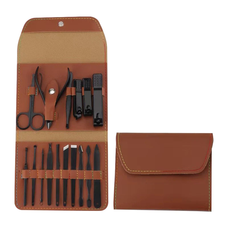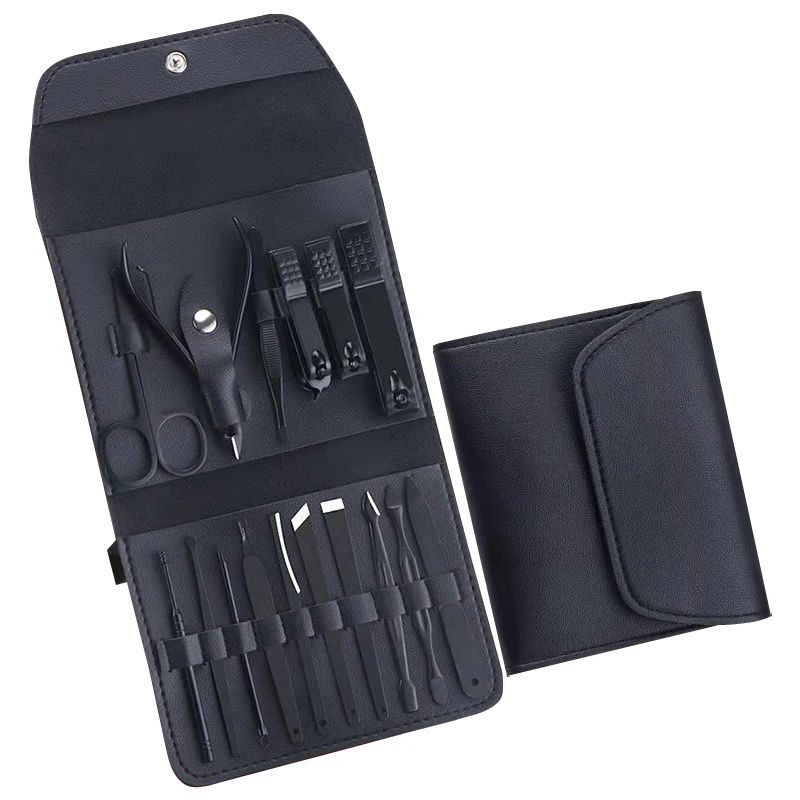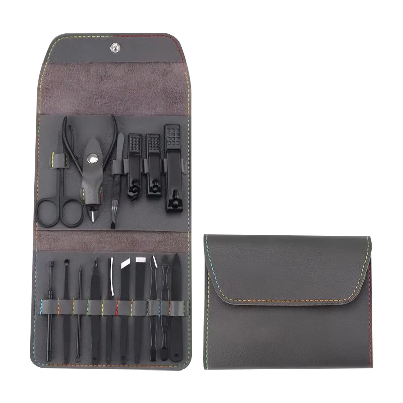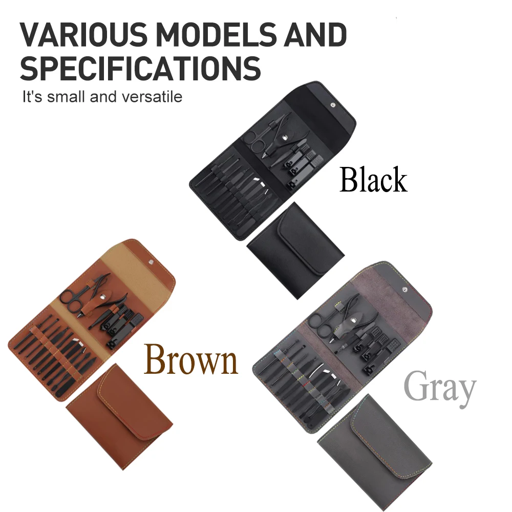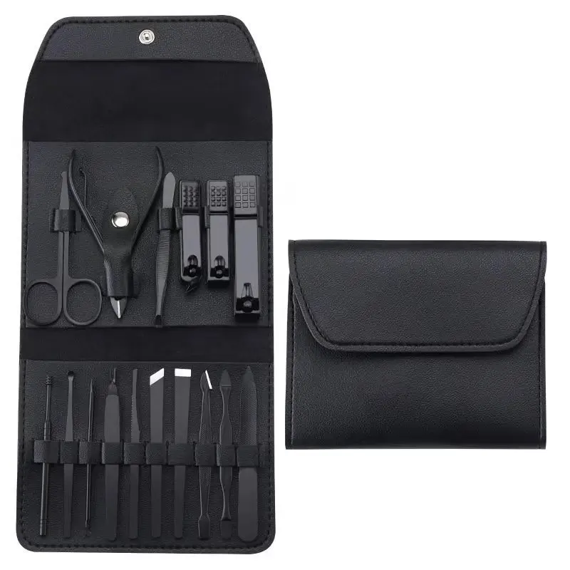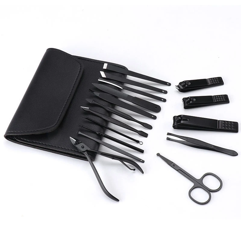 16 шт. профессиональные кусачки для ногтей набор черный из нержавеющей стали Острый триммер для ногтей педикюр и маникюрный набор с Pu сумкой для мужчин/женщин