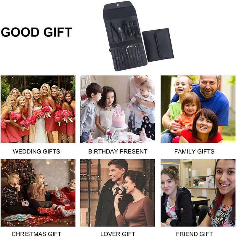 Путешествия маникюрный набор: 16 в 1 Профессиональный мужских и женских маникюрный набор для ухода за поставляется с черной Портативный PU кожаный чехол, чехол мини-размер 6,2*4,5 дюйм (ов), компактно предназначен размер PU кожаный чехол делает его очень удобно носить с собой, так как она занимает минимальный объем запоминающего устройства. Может поместиться практически в любые сумки или сумки через плечо, вы можете носить их в сумке каждый день или во время путешествия.