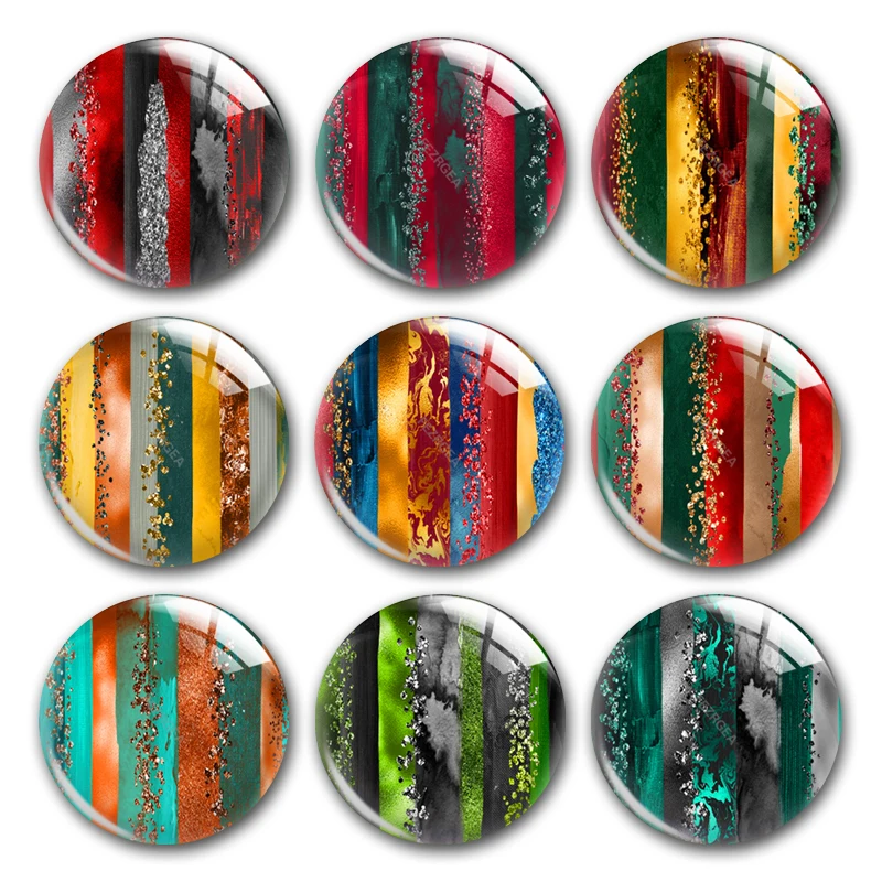 Осенние радужные штрихи ручной работы, круглые фото, Стеклянные Каб...