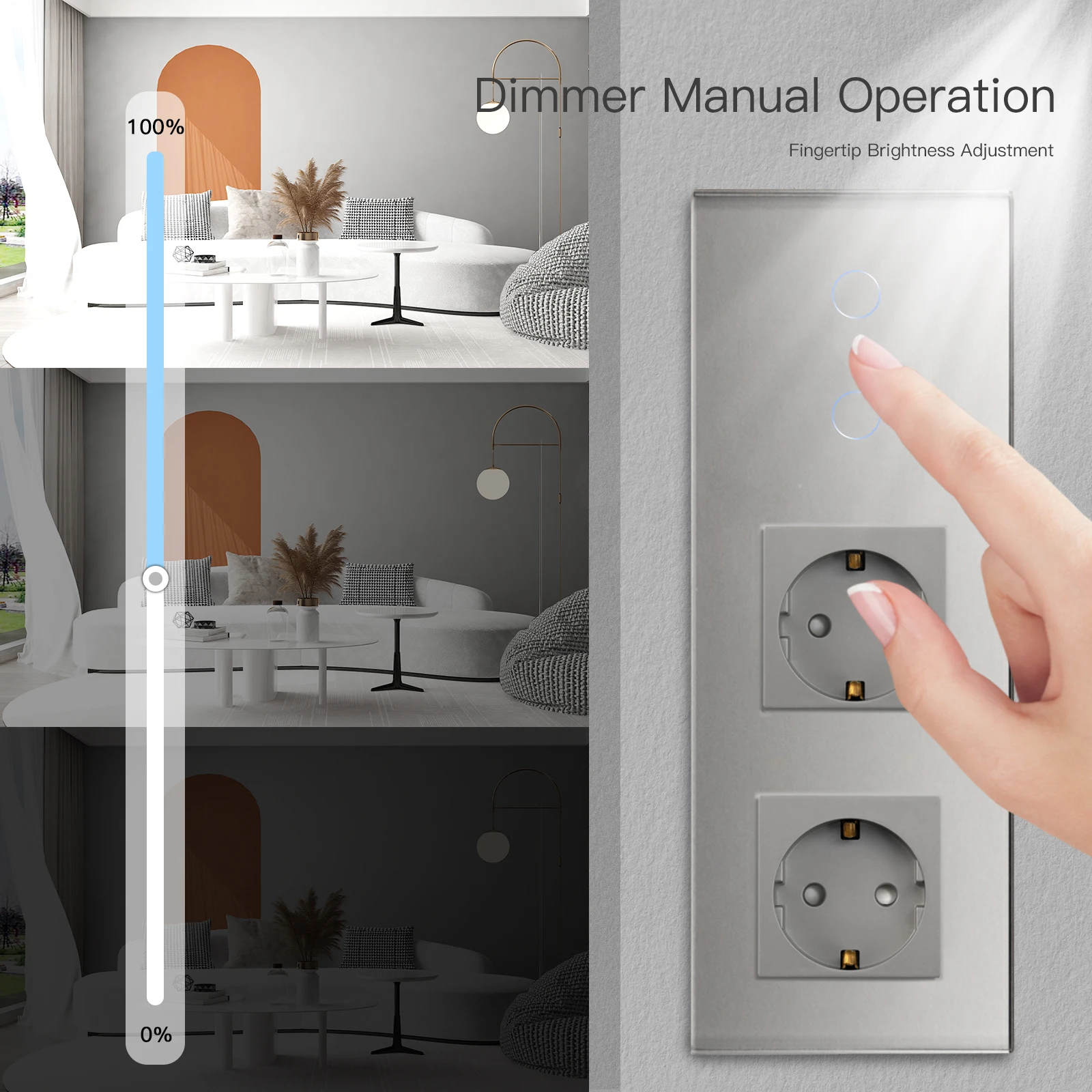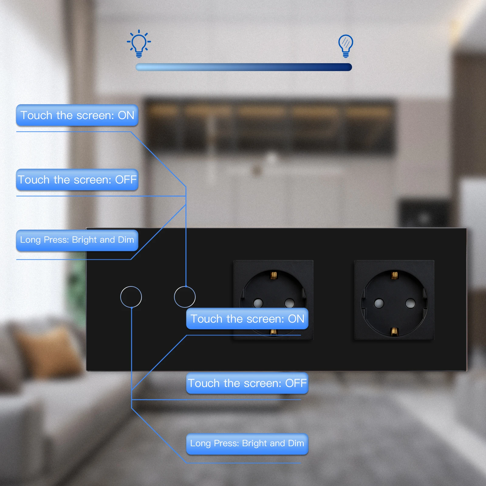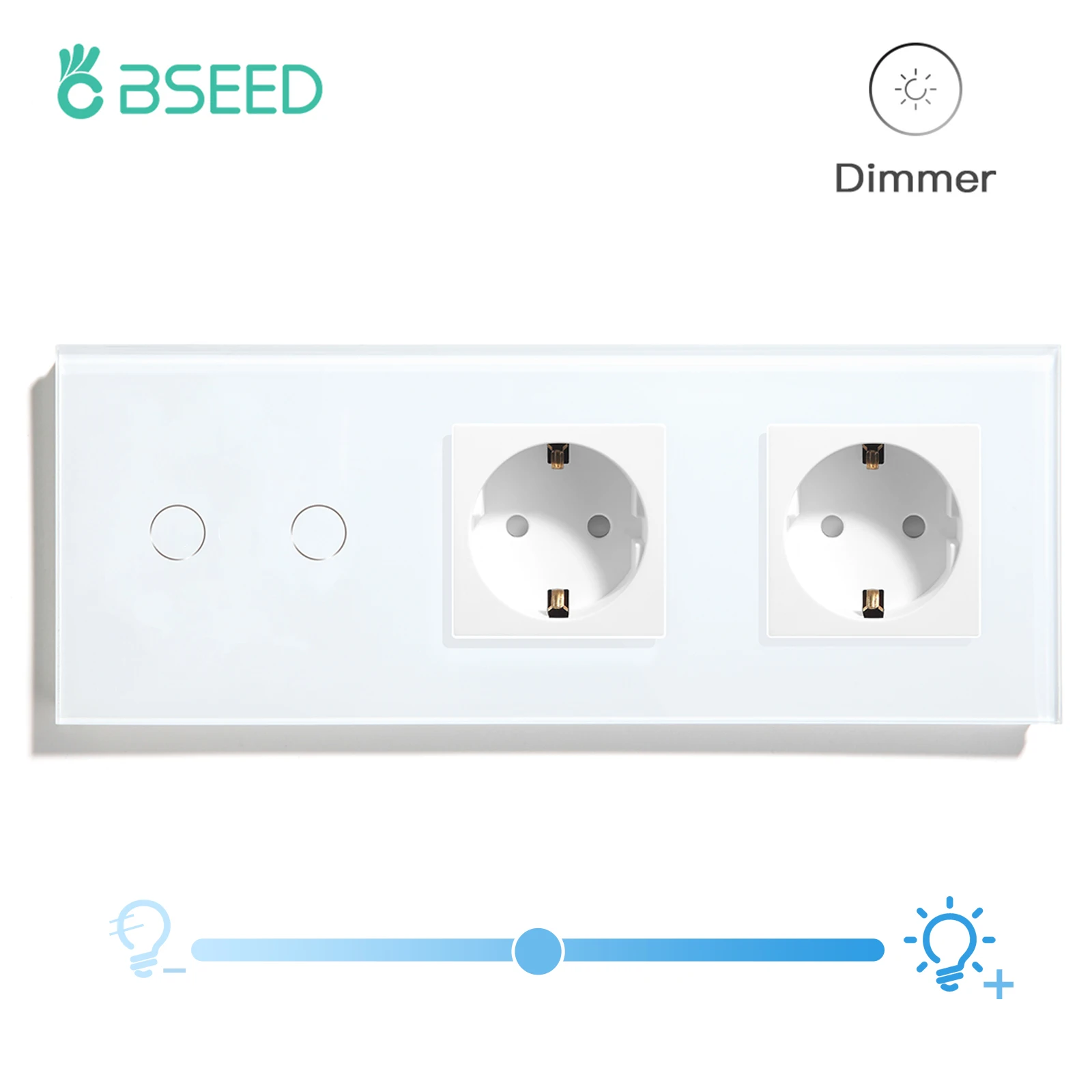 BSEED сенсорный диммер 2 комплекта 1Way с европейской двойной стенкой Набор розеток Хрустальная стеклянная панель светодиодный светильник с регулируемой яркостью переключатели
