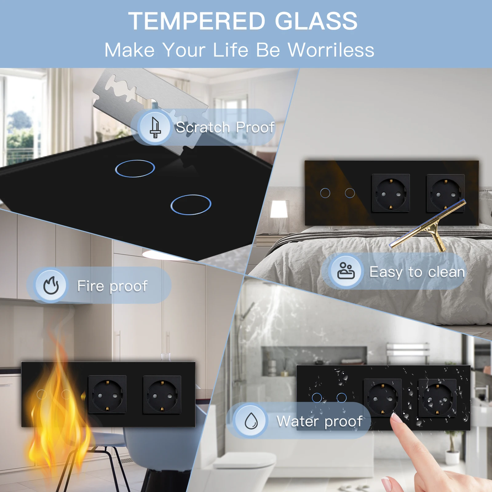 Сенсорные переключатели света BSEED, 2 клавиши, 1 канал, с двойной стенкой европейского стандарта, стеклянная панель, светодиодные переключатсветодиодный света с регулируемой яркостью