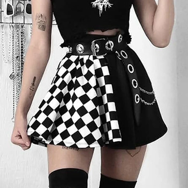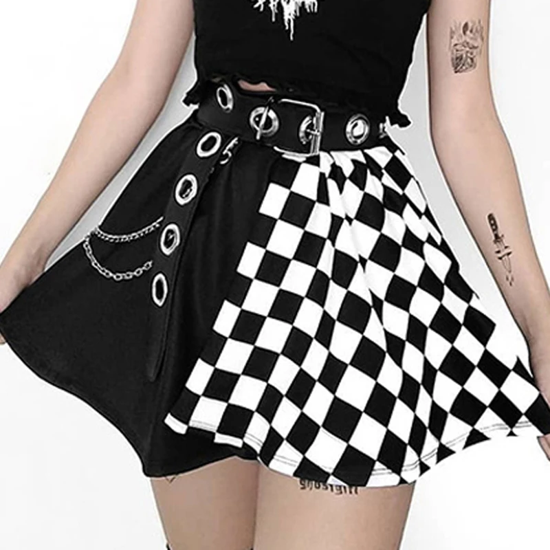 Zoki сексуальные клетчатые юбки женские Лоскутные готические трапециевидные мини-юбки Harajuku Grunge Y2K Клубная уличная одежда летняя мода Новинка