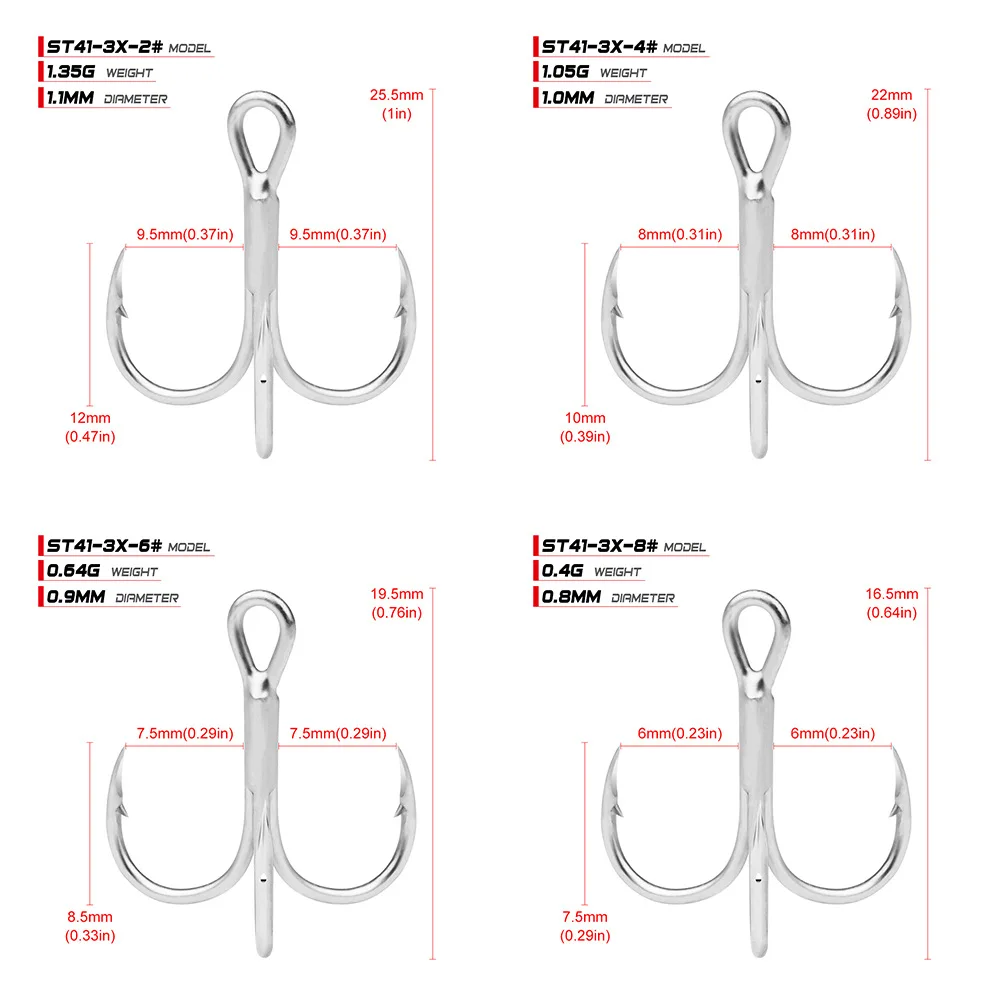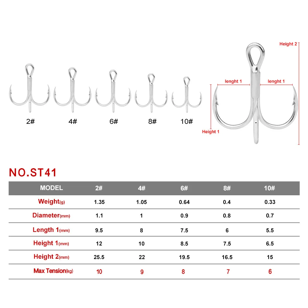 Тройные рыболовные крючки PROBEROS, 20 шт., супер острые, 246810121...