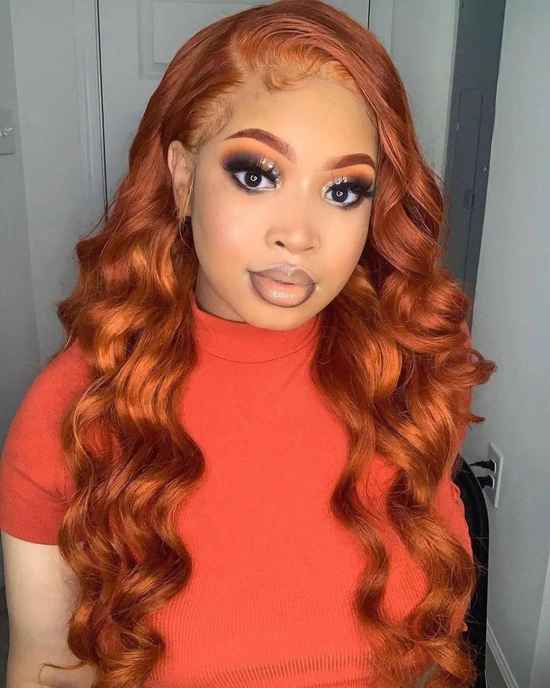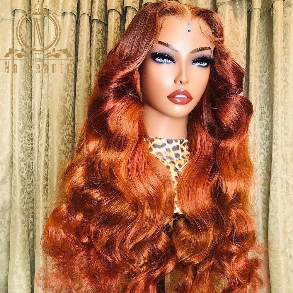 Парики для женщин, из натуральных волос, HD прозрачные, рыжий цвет, 30 дюймов