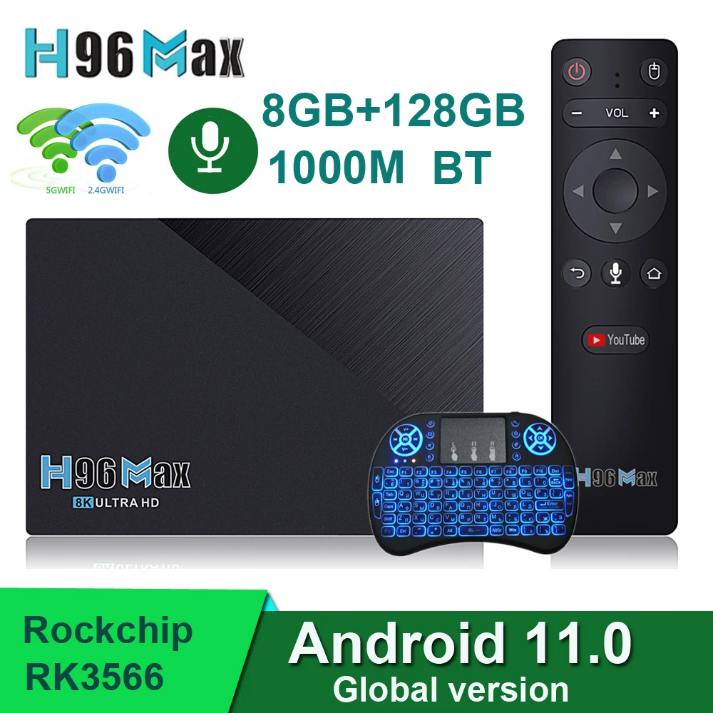 Приставка Смарт-ТВ H96 MAX RK3566, 8 ГБ, 64 ГБ, 4 Гб, 32 ГБ, 2,4G, 1000M LAN, Двойной Wi-Fi, BT4.0, 8K, HDR, Youtube, голосовое управление Google