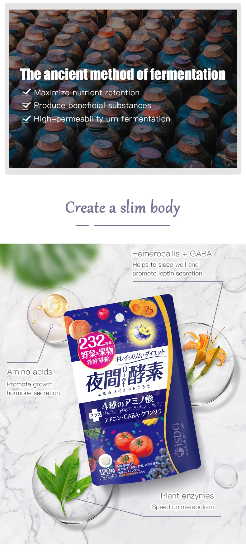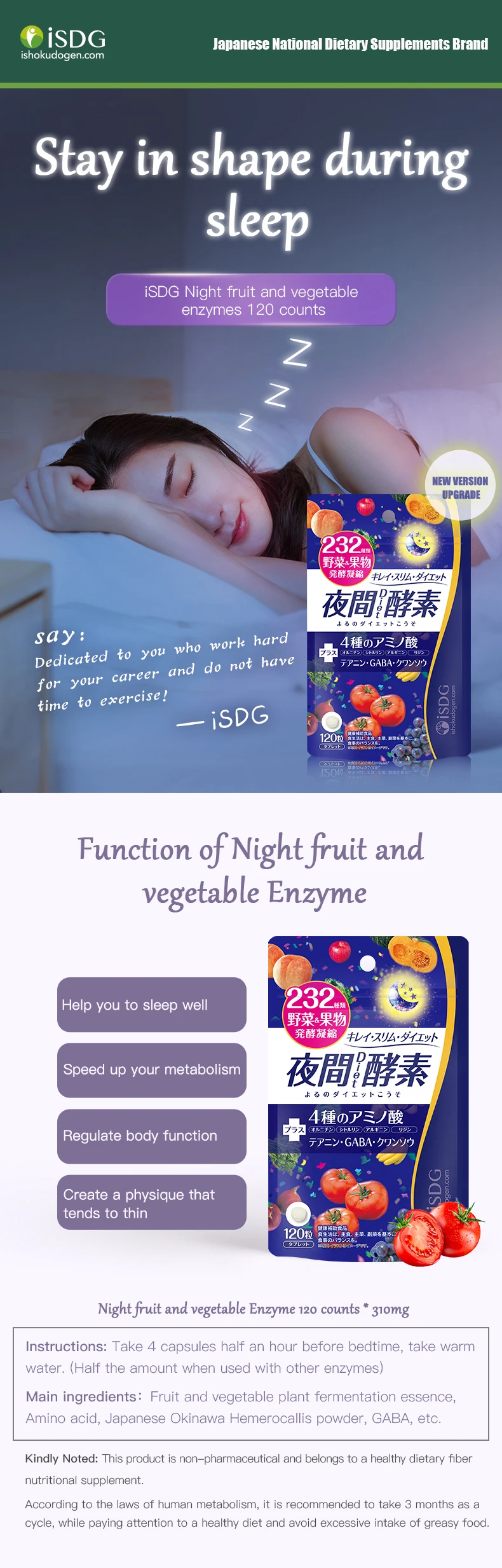 Оригинальный японский бренд ISDG, таблетки для сна, 120 таблеток, энзим для потери веса, фруктовые овощи, помощь при ночном сне помогает улучшить бессонницу