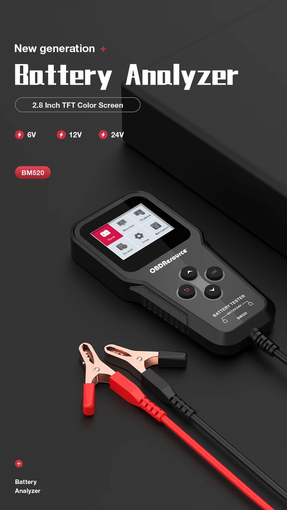 Тестер автомобильных аккумуляторов BM520, 6 в, 12 В, 24 В, 100-2000 CCA, 2 Ач-Ач, устройство для обнаружения автомобильной батареи PK KW208 icon star icon star icon star icon star icon star