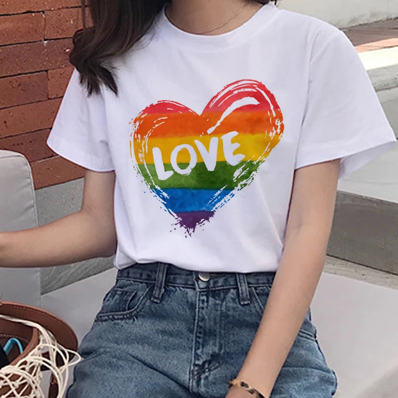 ЛГБТ Топы Pride для геев, любителей лесбиянок, Радужный дизайн, женские футболки, белые топы, летние футболки с эстетичным графическим коротким рукавом, полиэстер