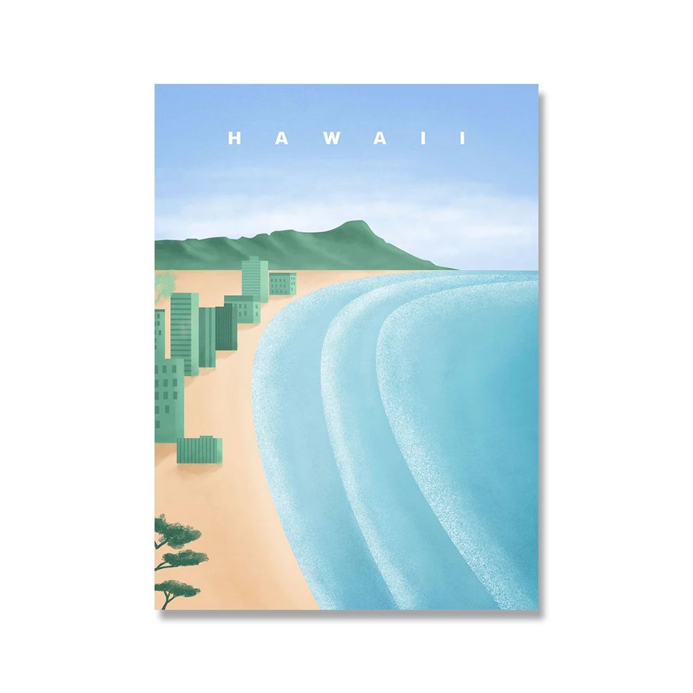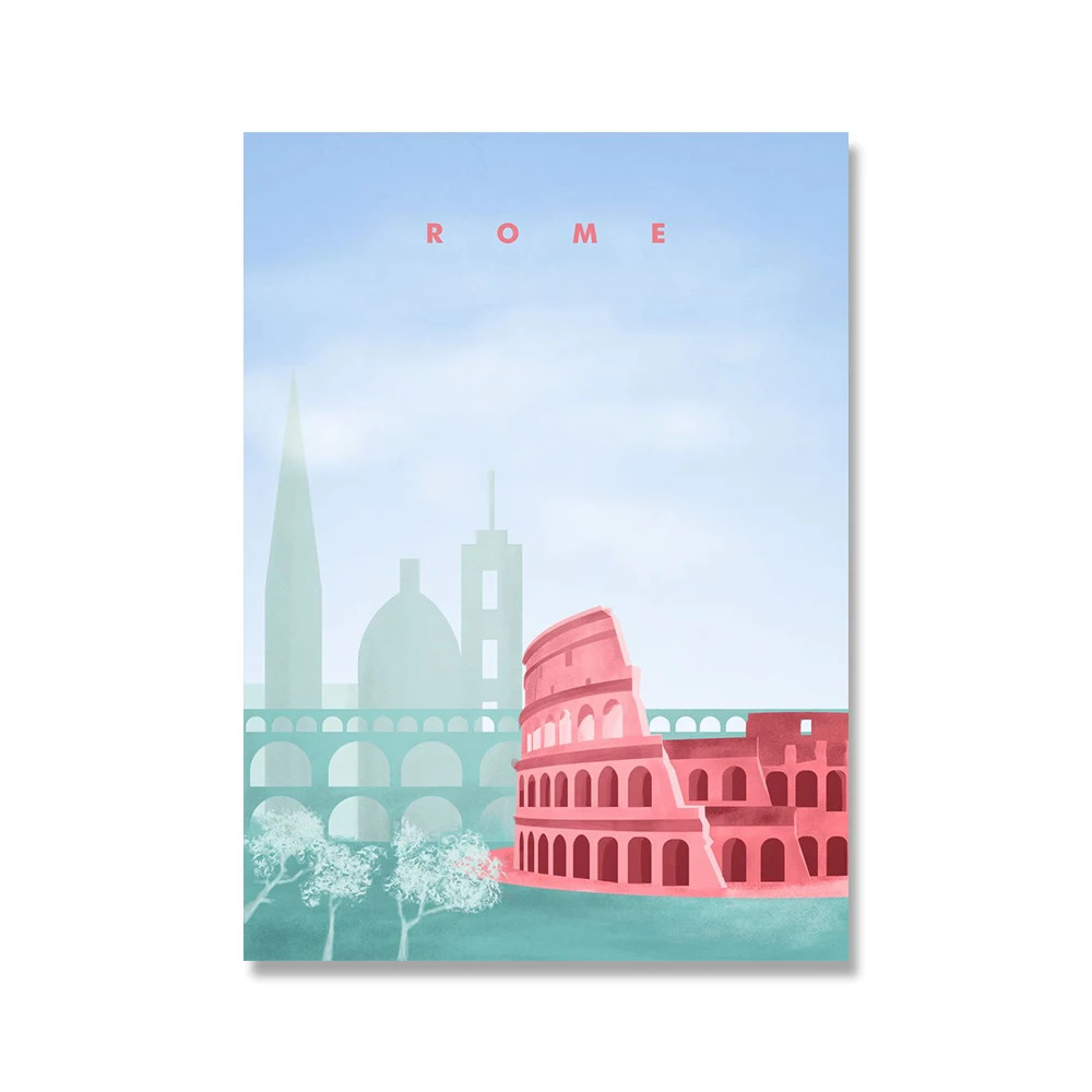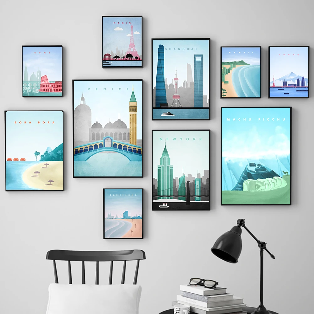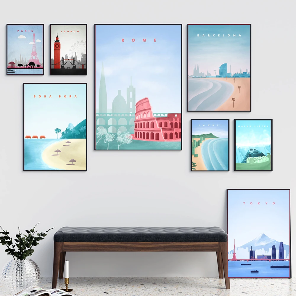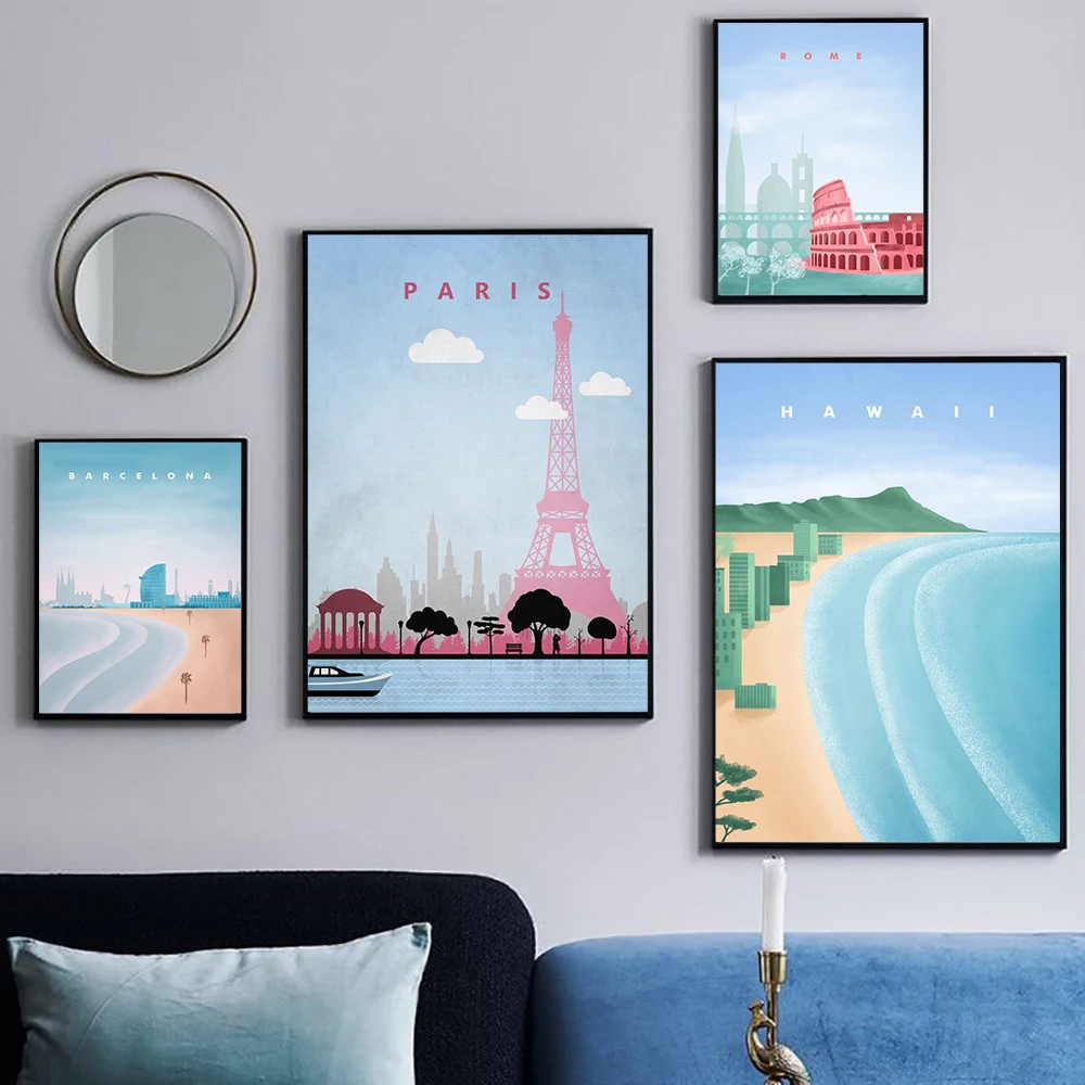 Настенные постеры для путешествий в скандинавском стиле с изображением города, Барселоны, Гавайского, римского пейзажа, картины на холсте, Мультяшные настенные картины, домашний декор