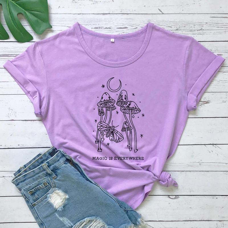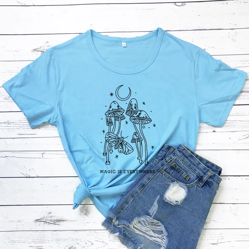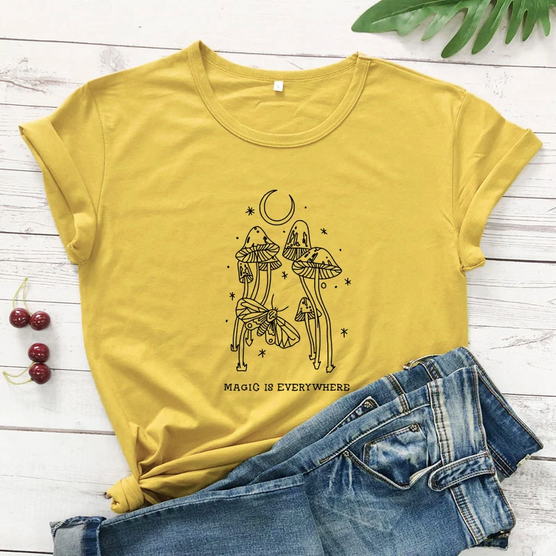 Женская Винтажная Футболка Magic Is Anywhere с принтом моли и грибов