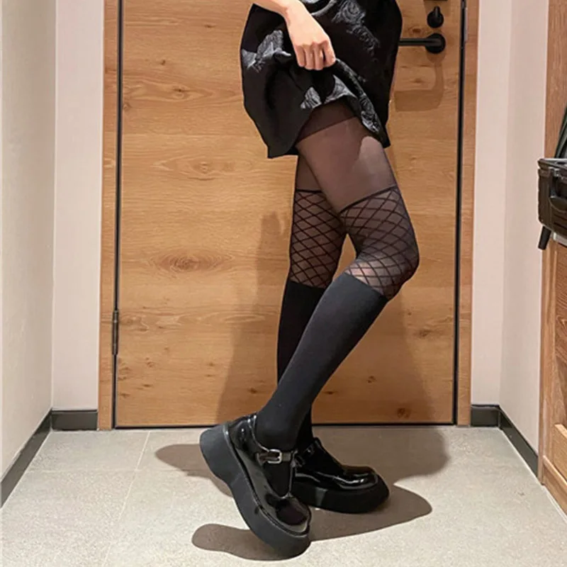 Колготки женские, осень 2021, поддельное лоскутное шитье