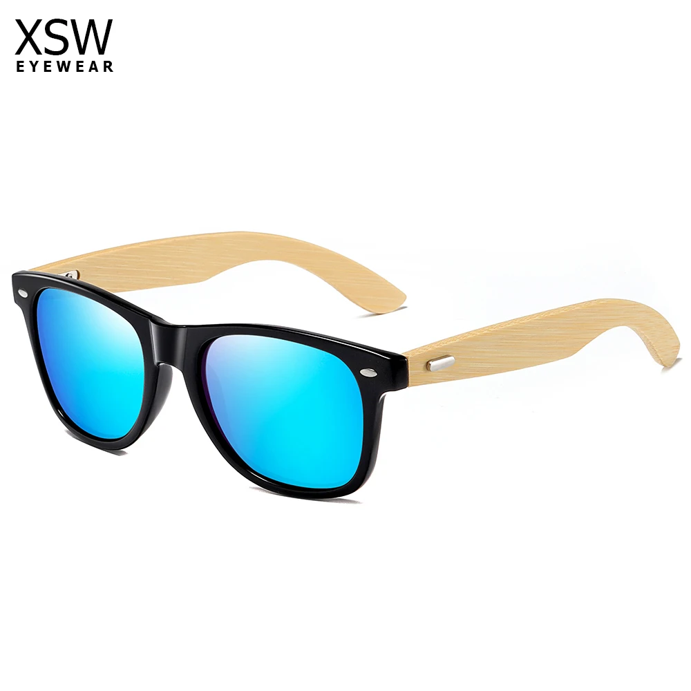 Деревянные солнцезащитные очки ручной работы XSW для мужчин и женщин, квадратные бамбуковые зеркальные солнцезащитные очки, ретро de sol masculino