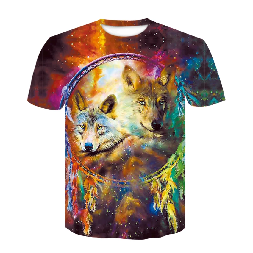 Футболка мужская с 3D-принтом волка, модная повседневная тенниска с...
