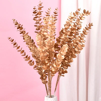 Искусственный цветок, однобутоньерка, 50 см, золотые, листья эвкалипта, свадебная дорожная Цветочная композиция, украшение для дома, сделай сам