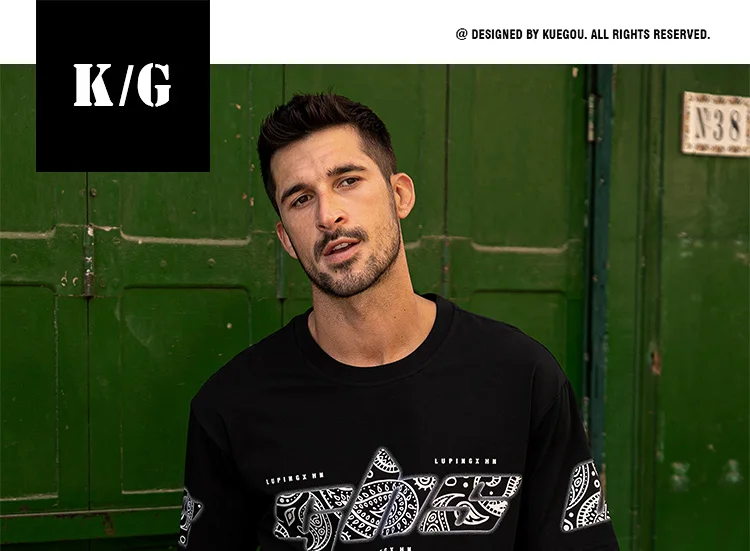Мужской свитшот с надписью KUEGOU, Черный Повседневный свитшот с ка...