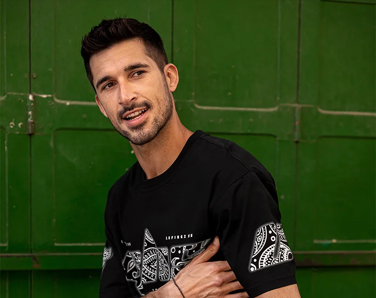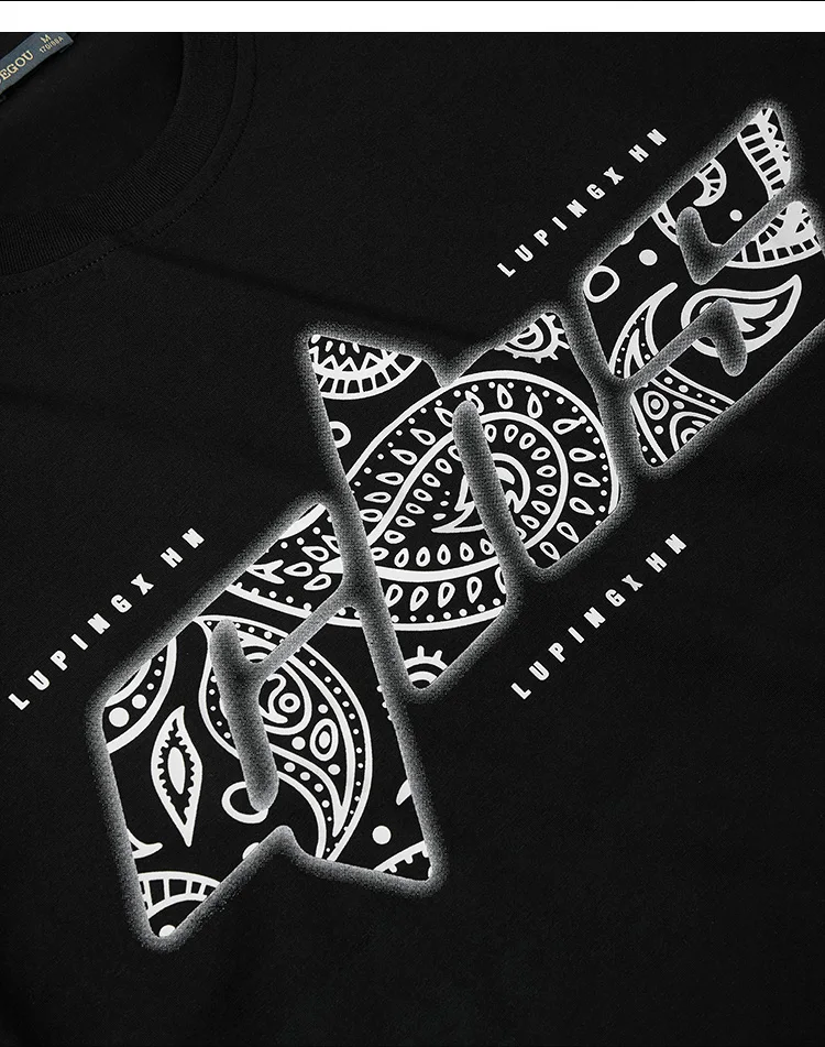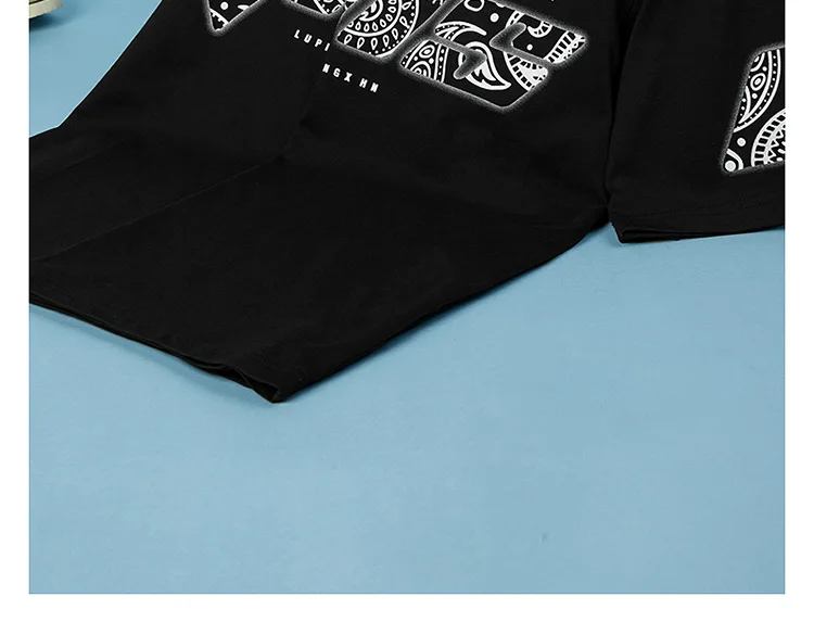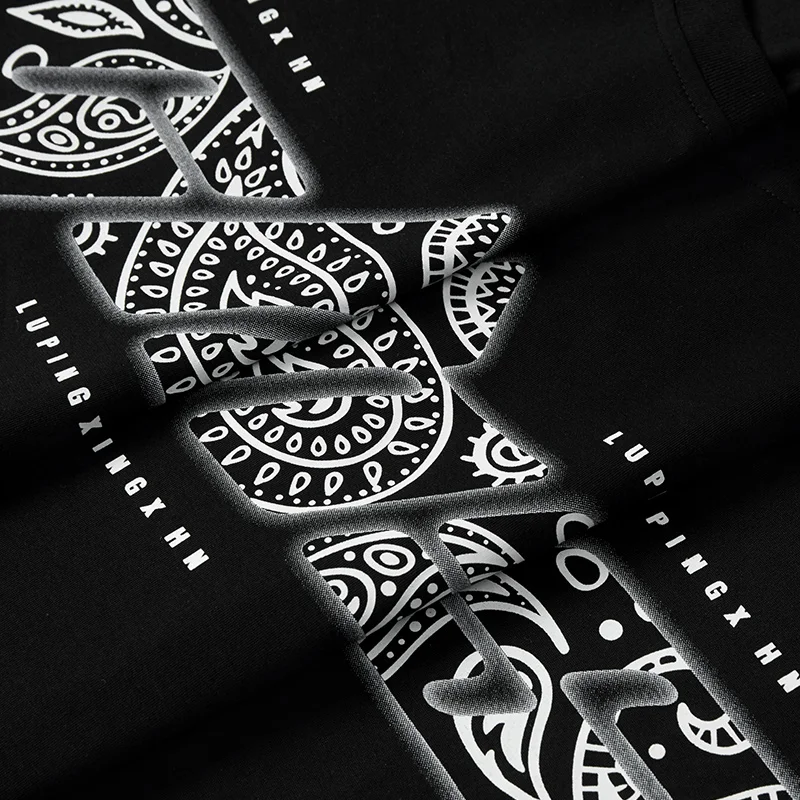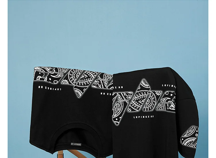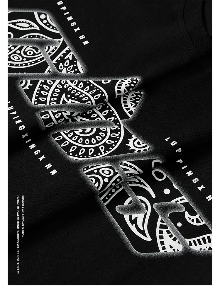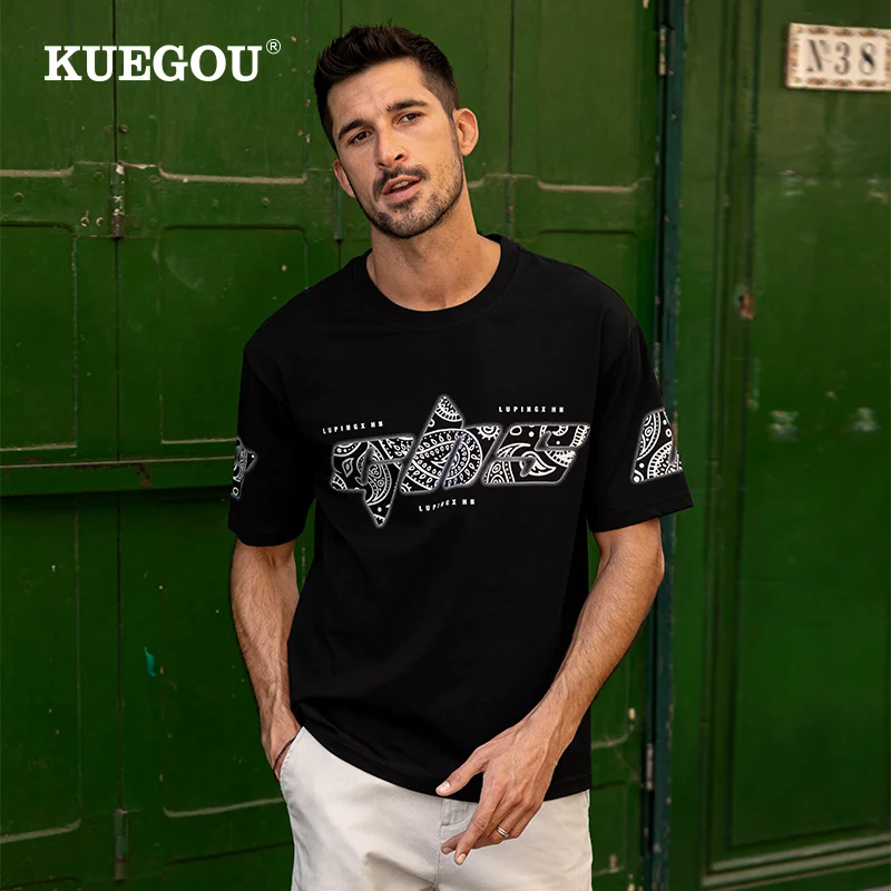 Мужская футболка с коротким рукавом KUEGOU, черная свободная футболка с коротким рукавом, с принтом, большие размеры, лето 2022